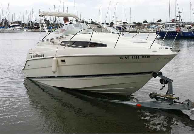 - 1999 Bayliner Ciera 2355 Sunbridge "Cabin Cruiser"- Affordable big boat virtues!!- "An outstanding family cruiser with a full measure of comfort, performance and privacy"- Length over all (LOA) 23'4"/7.12m- Beam 8'5"/2.57m- Deadrise 16*- Weight 4615 lbs / 2095 kg- Length rigged 24'8" / 7.52m- Draft hull 1'5" / .43m- Draft max 2'10" / .86m- Bridge clearance 6'2" / 1.88m- Fuel capacity 55 gal / 208L- Holding tank capacity 13 gal / 49L- Water capacity 13/ 49L- Private bathroom with locking door- Functional galley - Alcohol stove- Stainless steel sink- Generous storage- Plenty of room to relax in the cabin- Convertible V-berth table- AM/FM/Cassette stereo- Motor recently tuned up- New spark plugs- Synthetic oil change- New oil pressure sensor- New air filter- New fuel filter- all fluids topped off- all cleaned and checked over- less then 280 hours- life jackets, bumpers, fish finder, safety equipment all included- freshly detailed and steamed cleaned carpets and interior- blue storage protector cover included- plastic shade covering also included- boat is turn key ready to use- ONE OWNER, well maintained and taken care of- galvanized trailer included* permanent registration* good tires* axles and bearings freshly lobbed* water line to flush brakes* all lights and hook up in working order* trailer in good condition- Clean CA title in hand- Current registration till 12/2015- Vessal assist $149 per year (unlimited tows, gas/parts delivery, assistance)(California)- Full coverage insurance from AAA $394 per year (California)- Very affordable to own- This Bayliner is in very good condition inside and out. It's been babied it's whole life and always maintained and well taken care of. It's ready to hit the water and cruise. Very roomy boat, can sleep 6 people and fits 12. Enough space for all your friends and family. Please email me if you have any questions.- More pictures upon request!!